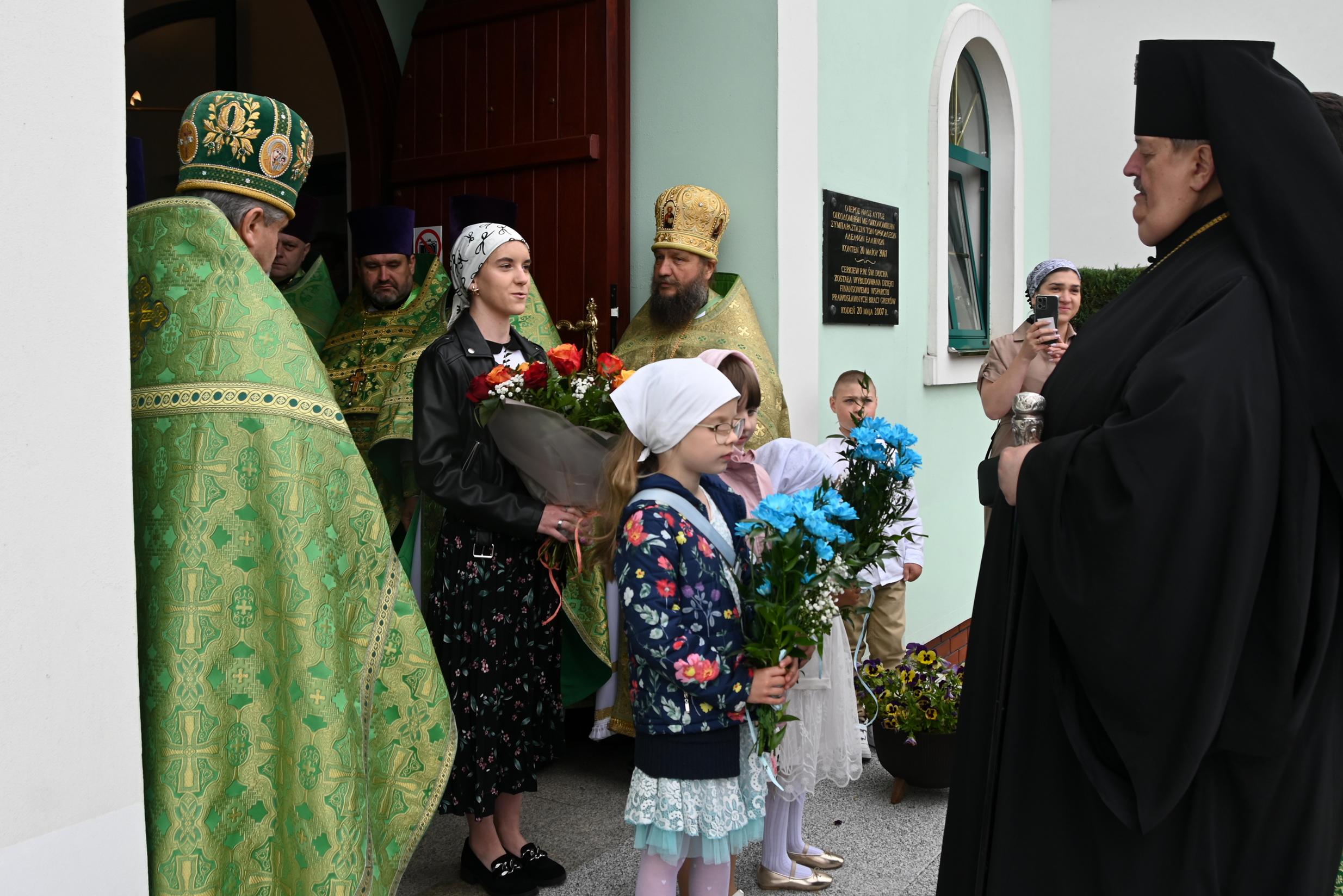 Przy uroczystym biciu dzwonów, u progu świątyni ordynariusza diecezji powitali najmłodsi parafianie, starosta cerkiewny oraz proboszcz ks. prot. Jan Grajko. Cerkiew tradycyjnie wypełniła się miejscowymi wiernymi, jak również pielgrzymami z Białej Podlaskiej i wielu okolicznych miejscowości. Do tak zacnego grona wiernych słowa homilii skierował sam Władyka Abel. Przedstawił w niej istotę wydarzenia zesłania Ducha Św. na apostołów. Zwrócił uwagę na nieprzemijającą pełnię Św. Ducha w Cerkwi, czyli ów Dar, który został przelany na Cerkiew w dniu Pięćdziesiątnicy i dzięki któremu może Ona realizować misję w ciągle zmieniającym się świecie. Ta misja spoczywa również na barkach poszczególnych wiernych, dlatego musimy nieustannie dbać o czystość wiary i zachowanie św. tradycji, by dzielić się tymi skarbami z kolejnym pokoleniem wyznawców Chrystusa.