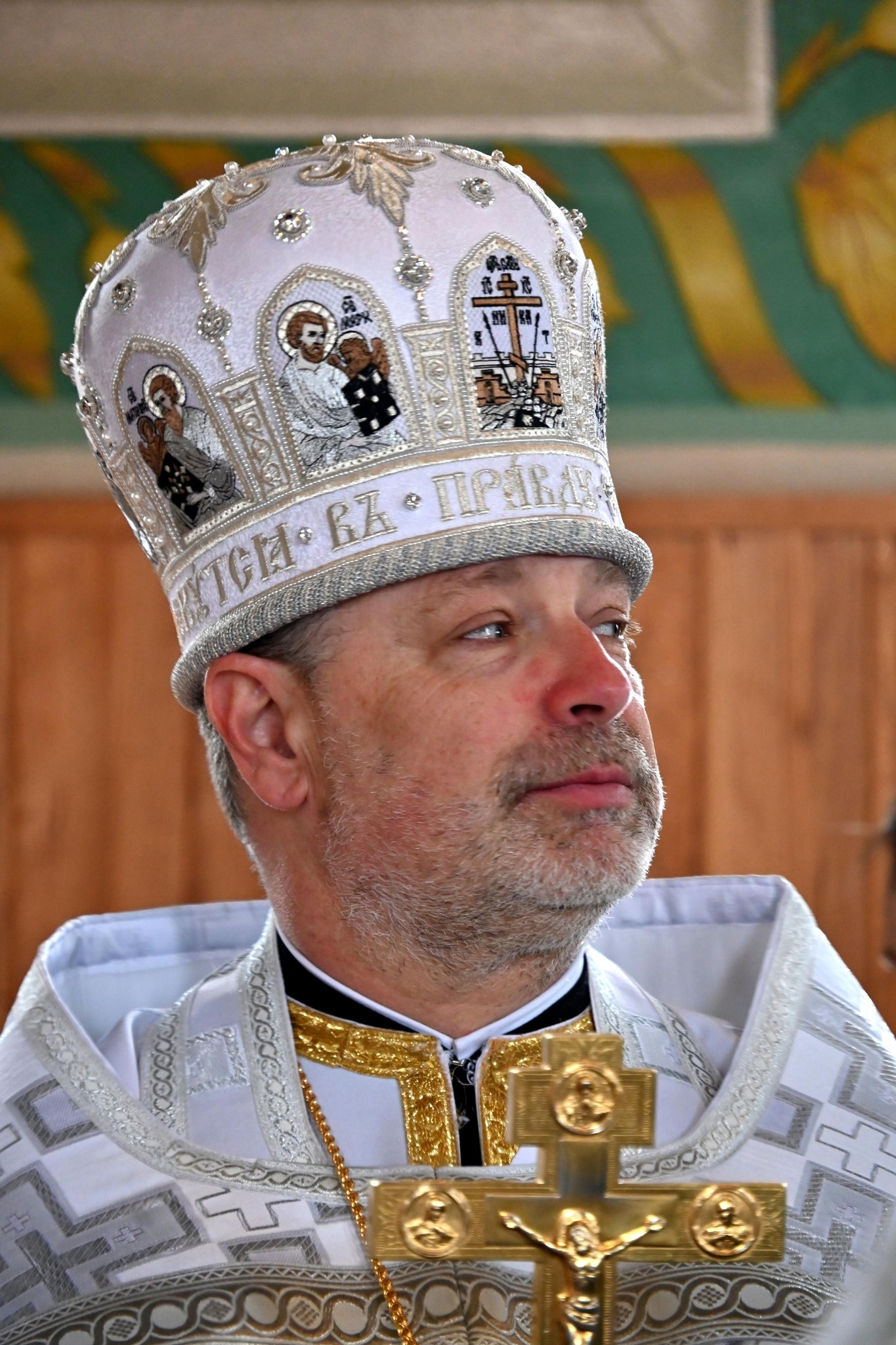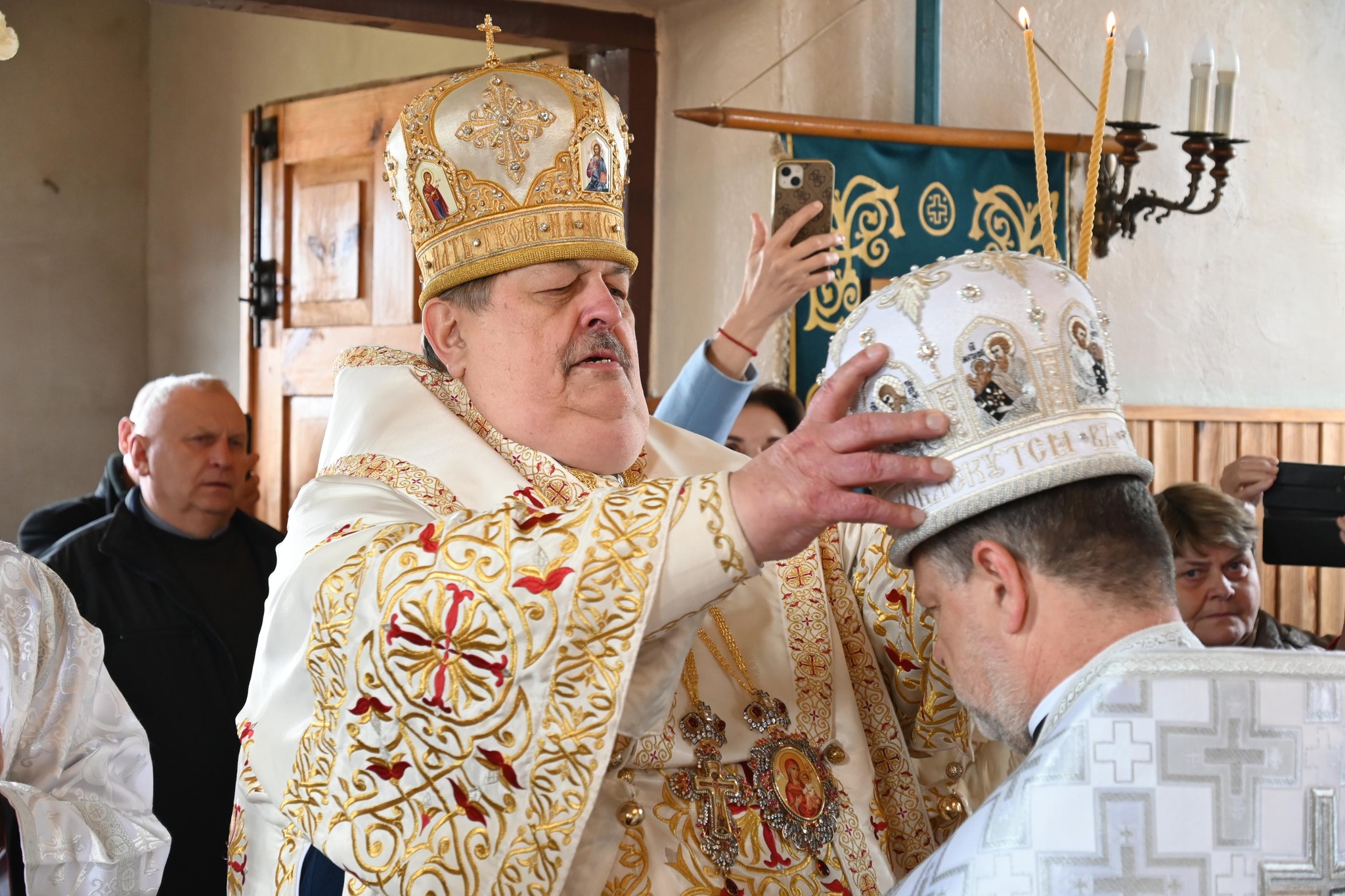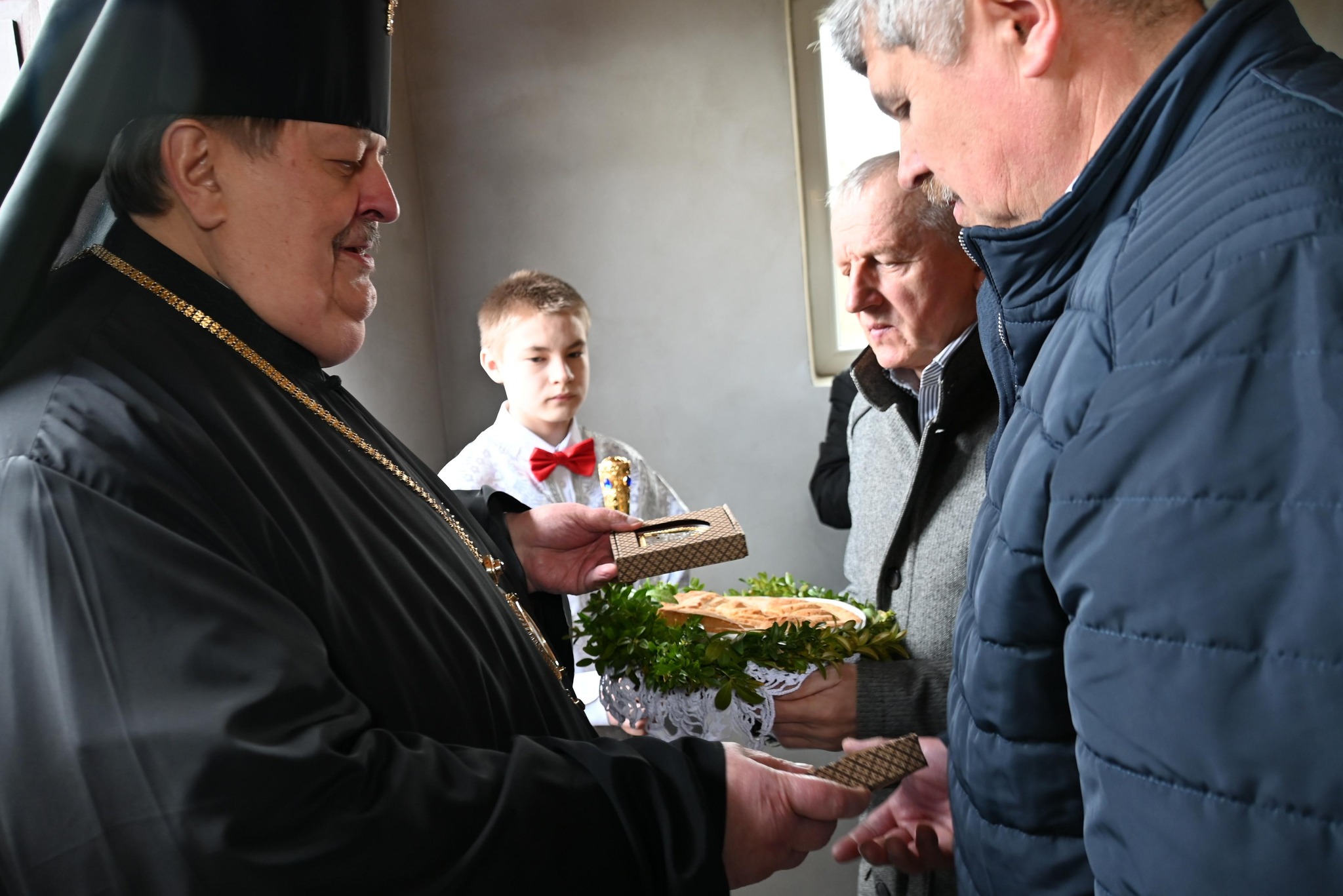 W trakcie Małego Wejścia Jego Ekscelencja w imieniu Świętego Soboru Biskupów PAKP uhonorował proboszcza parafii, ks. Prot. Jana Kulika jedną z najwyższych nagród kapłańskich – prawem noszenia mitry.