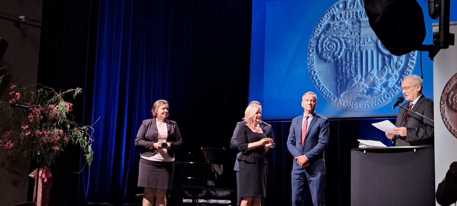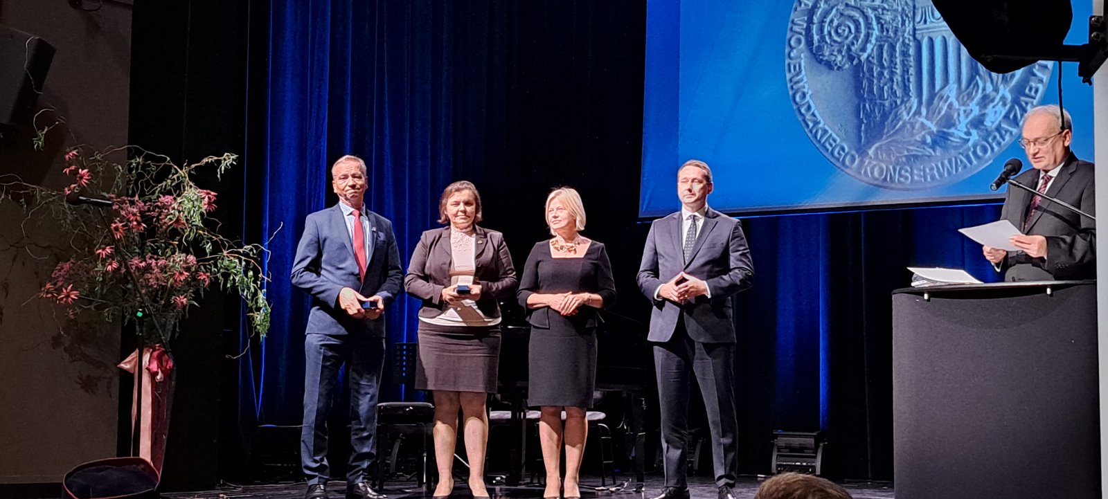 Złote odznaki wręczyła Pani Minister Bożena Żelazowska, Sekretarz Stanu w Ministerstwie Kultury i Dziedzictwa Narodowego, Generalna Konserwator Zabytków. W swoim wystąpieniu pogratulowała Joannie Semeniuk i inż. Jerzemu Stadnikowi profesjonalizmu i poświęcenia, podkreślając, że ich praca przyczyniła się do ochrony cennej spuścizny kulturowej, historycznej i architektonicznej. Dzięki ich zaangażowaniu i pasji zabytki architektury cerkiewnej na Lubelszczyźnie są nie tylko chronione, ale również pełnią ważną rolę w budowaniu poczucia dumy i tożsamości mieszkańców regionu. Laudację na cześć wyróżnionych wygłosił dr Dariusz Kopciowski, Lubelski Wojewódzki Konserwator Zabytków.