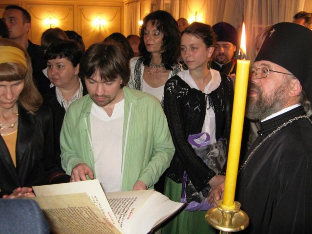 W piątek 8 maja wieczorem w Trybunale Koronnym w Lublinie odbyła się prezentacja jednego z pierwszych przekładów Ewangelii na język ukraiński – Ewangeliarza Peresopnickiego. Uroczystość związana była z wydaniem w 2008 r. reprintu XVI-wiecznego oryginału z inicjatywy ihumenii Serafymy – przełożonej żeńskiego monasteru św. Michała w Odessie. Wierna kopia Ewangeliarza Peresopnickiego od kilkunastu miesięcy prezentowana jest przez siostrę ihumenię Serafymę na całym świecie. W maju br. można było ją zobaczyć podczas spotkań zorganizowanych czterech miastach w Polsce. Jednym z tych nielicznych miejsc był Lublin. Lubelską prezentację honorowym patronatem objął prezydent miasta Adam Wasilewski. Uroczystość rozpoczął prezes Towarzystwa Ukraińskiego w Lublinie i historyk z Wydziału Humanistycznego UMCS dr Grzegorz Kuprianowicz. Podkreślił on znaczenie Ewangeliarza Peresopnickiego dla kultury ukraińskiej. Stwierdził, że jest symbolicznym, iż prezentacja odbywa się właśnie w murach Trybunału Koronnego, będącego świadkiem epoki, w której powstał Ewangeliarz Peresopnicki. Przypomniał, że w czasach istnienia państwa polsko-litewskiego mieściła się tu także kancelaria ruska, w której sporządzano dokumenty w języku ruskim (staroukraińskim), tym samym, którym napisany został Ewangeliarz Peresopnicki. Oprawę muzyczną dla prezentacji stanowiły dwa koncerty muzyki cerkiewnej. Na początku wystąpił zespół kameralny chóru Prawosławnej Diecezji Przemysko-Nowosądeckiej „Irmos” pod dyrekcją Marianny Jarej. Zaprezentował on utwory będące świadectwem halickich tradycji ukraińskiego śpiewu cerkiewnego, które nadal są pielęgnowane w cerkwiach prawosławnych na terenie Diecezji Przemysko-Nowosądeckiej. Merytorycznego wprowadzenia do prezentacji dokonał prawosławny arcybiskup lubelski i chełmski Abel. Podkreślił on znaczenie Ewangeliarza Peresopnickiego dla ukraińskiej tradycji prawosławnej, obecnej także w terenie dawnej prawosławnej diecezji chełmskiej. Zwrócił również uwagę jak ważne jest rozumienie Ewangelii przez wiernych. Podkreślił doniosłość tłumaczeń Ewangelii na język ojczysty wiernych, zaznaczając, że Kościół prawosławny z zasady głosił Ewangelię w różnych językach i wprowadzał je do życia liturgicznego. Ze słowem do zgromadzonych zwrócili się również wiceprezydent Lublina Włodzimierz Wysocki, Konsul Generalny Ukrainy w Lublinie Ołeh Horbenko, a także dziekan Wydziału Humanistycznego Uniwersytetu Marii-Curie-Skłodowskiej w Lublinie prof. dr hab. Henryk Gmiterek. Kolejnym punktem uroczystości był wykład dr. Tadeusza Karabowicza, ukraińskiego poety i literaturoznawcy, pracownika Zakładu Filologii Ukraińskiej UMCS w Lublinie. Badacz przypomniał zgromadzonym etapy powstawania Ewangeliarza z Peresopnicy, jego złożone losy. Zwrócił uwagę na wartość estetyczną Ewangeliarza i jego aktualne znaczenie dla kultury ukraińskiej. Następnie goście wysłuchali inicjatorki wydania reprintu Ewangeliarza Peresopnickiego ihumenii Serafymy – przełożonej żeńskiego monasteru św. Michała w Odessie, przewodniczącej Synodalnego Departamentu „Cerkiew i Kultura” Ukraińskiego Kościoła Prawosławnego. Opowiedziała o tym, jak zrodził się pomysł wydania reprintu jednego z najcenniejszych ukraińskich zabytków piśmienniczych. Wyraziła wiarę i przekonanie, że prezentacje Ewangeliarza Peresopnickiego w wielu miejscach na Ukrainie i na świecie przyczynią się do odrodzenia ukraińskich tradycji prawosławnych zarówno na Ukrainie, a także poza jej granicami – wszędzie tam, gdzie z różnych przyczyn ich rozwój został ograniczony. Po wykładzie z koncertem wystąpił chór katedry prawosławnej pw. Przemienienia Pańskiego w Lublinie pod dyrekcją Andrzeja Boubleja. W repertuarze znalazły się w większości ukraińskie pieśni paraliturgiczne śpiewane na Chełmszczyźnie i Południowym Podlasiu. Na zakończenie do zebranych zwrócił się prawosławny arcybiskup lwowski i halicki Augustyn, który w imieniu Ukraińskiego Kościoła Prawosławnego przekazał arcybiskupowi Ablowi w darze reprint Ewangeliarza Peresopnickiego. Uczestnicy uroczystości mogli osobiście obejrzeć podarowany Prawosławnej Diecezji Lubelsko-Chełmskiej egzemplarz Ewangeliarza. Inicjatorką i główną organizatorką prezentacji Ewangeliarza Peresopnickiego w Polsce była Marianna Jara z Sanoka. Organizatorami lubelskiej prezentacji Ewangeliarza były: Prawosławna Diecezja Lubelsko-Chełmska, Towarzystwo Ukraińskie w Lublinie oraz Wydział Humanistyczny Uniwersytetu Marii Curie-Skłodowskiej w Lublinie. Prezentację zrealizowano dzięki dotacji Ministra Spraw Wewnętrznych i Administracji RP.