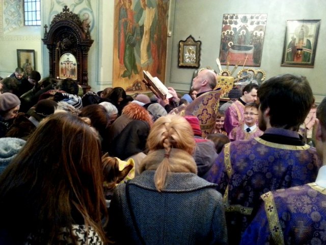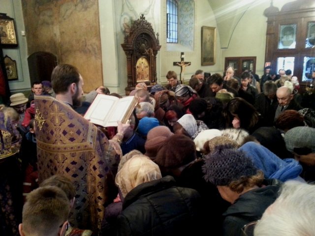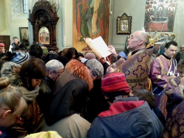 Tradycyjnie w Palmową Niedzielę wieczorem w lubelskiej cerkwi katedralnej zbierają się wierni aby uczestniczyć w sakramencie namaszczenia chorych. Również tego roku sakramentowi przewodniczył ordynariusz diecezji arcybiskup Abel w asyście duchowieństwa diecezji. Przed rozpoczęciem nabożeństwa z błogosławieństwa władyki ze słowami homilii do wiernych zwrócił się protodiakon katedry ks. Marek Waszczuk, który przedstawił zebranym istotę sakramentu, na przykładzie cytatów z Pisma Świętego. „Jeleoswiaszenije” – jest to sakrament, w którym poprzez modlitwę i namaszczenie ciała świętym olejem zmieszanym z winem udzielana jest Łaska Boża uzdrawiająca choroby duchowe i cielesne. Apostoł Jakub pisze: „Choruje kto między wami? niech wwiedzie kapłany kościelne, a niech się modlą nad nim, pomazując go olejem w imię Pańskie. A modlitwa wiary uzdrowi niemocnego, i ulży mu Pan: a jeśliby w grzechach był, będą mu odpuszczone.” (Jak. 5,14-15) Na stoliku układamy Ewangelię i Krzyż. Na specjalnym naczyniu ustawia się 7 zapalonych świec, oraz naczynka z olejem i winem pędzelki do pomazywania wiernych. Po kanonie poświęcany jest olej z winem, a następnie czytanych jest siedem fragmentów Apostoła i Ewangelii oraz modlitwę o uzdrowienie chorego. W trakcie modlitwy czytanej przez arcybiskupa, księża pomazywali wiernym, czoło, oczy, usta, piersi i ręce. Na zakończenie nad głowami zebranych została położona otwarta Ewangelię i przeczytana modlitwa o miłosierdzie nad chorymi.