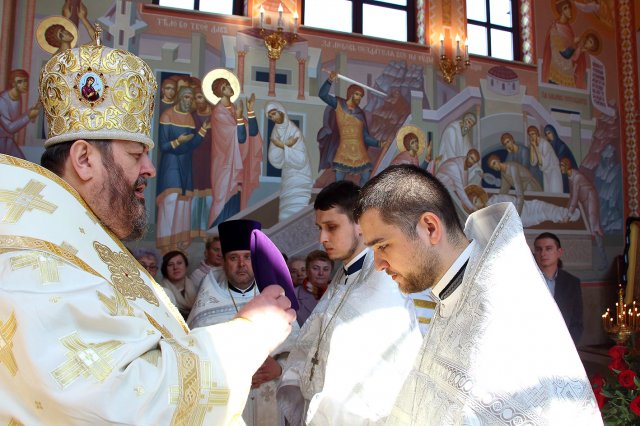 W ostatnim czasie w świątyni prawosławnej w Biłgoraju zakończony został ostatni etap prac nad polichromią. Grupa pięciu artystów z Doniecka, pod kierownictwem Włodzimierza Teliczko rozpoczęła pracę 28 października 2014 r. W pierwszych dniach kwietnia br., prace zakończono i ostatecznie zostały zdjęte rusztowania. Fot.: Natalia Kyc, Jan Bogdan, Andrzej Wilkiel