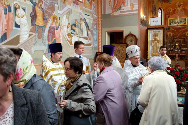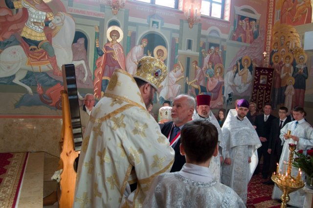 Z okolicznościową homilią do wiernych oraz duchowieństwa zwrócił się abp Abel. – Spotykamy się w tej nowej świątyni aby w sposób szczególny, liturgiczny przeżyć pamięć orędownika tej cerkwi, patrona tej wspólnoty św. wielkiego męczennika Jerzego – mówił w kazaniu abp Abel wspominając żywot świętego. – Fundament cerkwi naszej zbudowany jest na krwi męczenników. Budując tą świątynię chcieliśmy uwieńczyć tragedię historyczną tych ziem, kiedy w okresie międzywojennym nasi przodkowie doświadczali akcji burzenia świątyń prawosławnych. Dzisiaj na mocy tych szczególnych przeżyć w postaci tej nowej świątyni dajemy wspaniałe świadectwo – kontynuował. – Dzisiaj przeżywamy radość szczególną. W murach tej świątyni powinniśmy się nauczyć dyscypliny duchowej, która potrzebna jest do formacji naszej indywidualnej duchowości, dla budowania naszej świadomości prawosławnej i głębszego poznania istoty prawosławia.