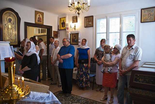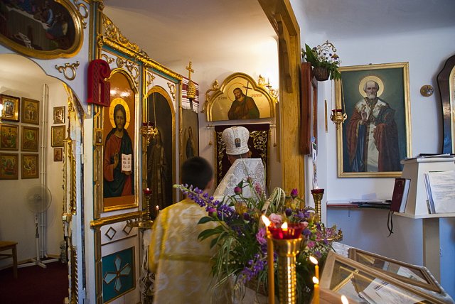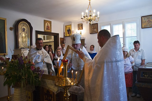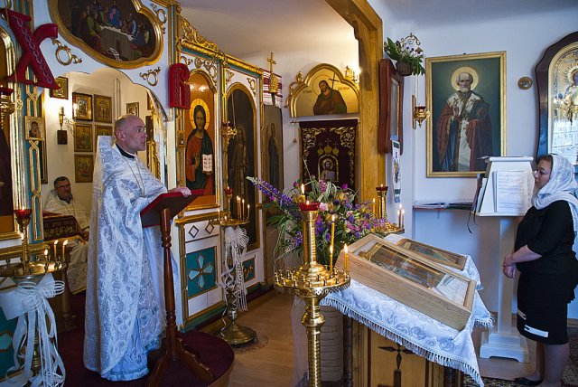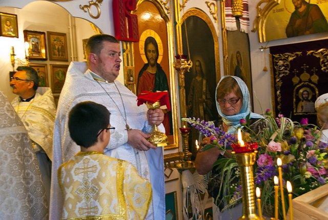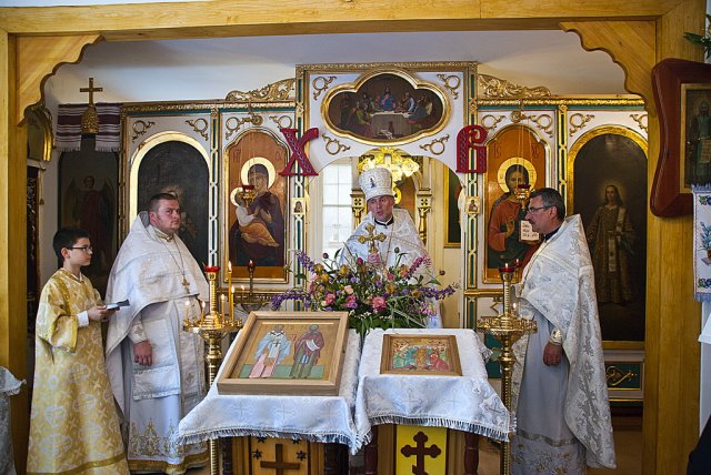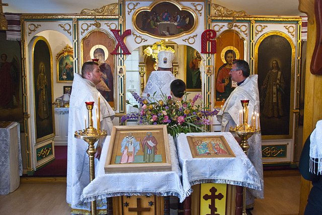 25 maja dla parafii w Sandomierzu to szczególnie uroczyste wydarzenie. W szóstą niedzielę po Zmartwychwstaniu Pańskim, określaną w kalendarzu liturgicznym o Ślepcu, prawosławna wspólnota Królewskiego Miasta i otaczających miejscowości, obchodziła dzień swoich niebiańskich patronów, śww. Równych Apostołom Braci Cyryla i Metodego. Boskiej Liturgii przewodniczył dziekan okręgu lubelskiego ks. mitrat Andrzej Łoś. Współtowarzyszyli mu ks. mitrat Władysław Tyszuk proboszcz parafii św. Mikołaja w Kielcach wraz z miejscowym proboszczem. Po lekcji ewangelicznej do zebranych zwrócił się ks. dziekan. W pouczającym słowie nakreślił rytm dnia i schemat naszych codziennych obowiązków, porównując go do ślepoty jaką może charakteryzować się każdy z nas, nie widząc w niej Zbawiciela. Zaakcentował, iż nigdy nie może zabraknąć w natłoku różnorakich spraw życiodajnego elementu wiary, podobnej do tej którą przejawiał ewangeliczny niewidomy zostawiając wszystko i powierzając całe życie Bogu. Kontynuując, duchowny uwypuklił rolę śww. Cyryla i Metodego jako braci otwierających oczy na ślepotę wszystkich pogan, będących oświecicielami i wyjątkowymi wysłannikami Trójjedynego Boga. Podczas nabożeństwa miało miejsce poświęcenie ikony śww. Cyryla i Metodego wraz z chorągwiami. Ikona przeznaczona na środek głównego pulpitu świątyni, została napisana ze środków uzbieranych od białostockich parafian. Kolekty przeprowadzała mieszkanka Białegostoku pani Anna Nasuta. Ofiarodawcami chorągwi byli państwo Mirosław i Anna Kozioł z Gródka. Tak ikona jak i chorągwie idealnie wkomponowały się we wnętrze sandomierskiej świątyni nadając jej jeszcze bardziej urokliwego i duchowo ubogaconego wymiaru. Okolicznościowe pismo wystosował zaprzyjaźniony z parafią Burmistrz Sandomierza, Jerzy Borowski. Podczas całowania krzyża każdy z wiernych otrzymał folder informacyjny o historii prawosławia w Sandomierzu, stworzony z okazji święta patronalnego śww. Równych Apostołom Braci Cyryla i Metodego. Fot. dr Piotr Sławiński, Aleksandra Zwieriewa