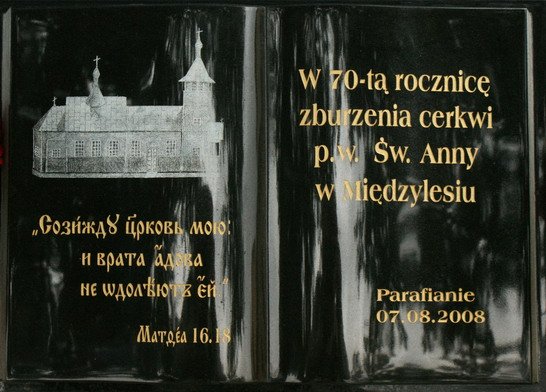 7 sierpnia to dzień w którym Cerkiew Prawosławna czci pamięć Zaśnięcia św. Anny matki Bogarodzicy, patronki cerkwi w Międzylesiu w diecezji lubelsko – chełmskiej. Dzień ten był również siedemdziesiątą rocznicą zburzenia cerkwi św. Anny w Międzylesiu.  Boską Liturgię celebrowali JE  Szymon arcybiskup łódzki i poznański, JE Abel arcybiskup lubelski i chełmski oraz JE Paisjusz biskup piotrkowski w asyście licznie zebranego duchowieństwa. Kazanie wygłosił biskup Paisjusz zwracając uwagę na postać św. Anny jako przykład matki. Zwrócił się również do dzieci i młodzieży by pielęgnowali prawosławie, modlili się jak uczyli rodzice, dziadkowie i przodkowie. By owa modlitwa płynęła z głębi serca. Po Liturgii odbyła się procesja wokół świątyni podczas której abp Szymon dokonał poświęcenia tablicy ufundowanej przez międzyleskich parafian upamiętniającej siedemdziesiątą rocznicę zburzenia cerkwi. Przy krzyżu i tablicy abp Abel w swoim słowie nawiązał do męczeństwa ludzi, którzy żyli w latach 1938 – 1939, kiedy to burzono cerkwie prawosławne. Na zakończenie uroczystości ze słowami podziękowań zwrócił się abp Abel, a następnie proboszcz parafii, dziekan dekanatu terespolskiego – ks. Jan Dmitruk Na placu cerkiewnym był rozstawiony namiot z wystawą pana Grzegorza Kuprianowicza i pana Sławomira Wyspiańskiego upamiętniającą akcję burzenia cerkwi prawosławnych na Chełmszczyźnie i południowym Podlasiu w 1983 roku. Historia Cerkwi w Międzylesiu: Cerkiew p.w. Św. Anny w Międzylesiu została wzniesiona z ofiar parafian w 1906-1907 roku. Terytorialnie w tym okresie należała do parafii w Zabłociu odległej o 10 km. Nabożeństwa odprawiane były przez duchowieństwo z Zabłocia do wybuchu pierwszej wojny światowej.