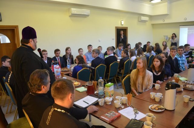 Spotkanie rozpoczęło się modlitwą, po czym wszystkich zebranych przywitała przewodnicząca Bractwa Młodzieży Prawosławnej Diecezji Lubelsko-Chełmskiej – Katarzyna Rabczuk. Ze słowem powitania oraz podziękowania za obecność zwrócił się również władyka Abel, który niejednokrotnie podkreślał, iż młodzi stanowią przyszłość Cerkwi. Głos zabrał także opiekun duchowy – ks. Marcin Gościk. Wśród osób zebranych na spotkaniu byli również: przewodnicząca BMP w Polsce – Marta Całpińska, przewodnicząca BMP Diecezji Białostocko-Gdańskiej – Ksenia Kacejko oraz przedstawicielka BMP Diecezji Warszawsko-Bielskiej – Anna Marczuk. Marta Całpińska na przykładzie opowieści o dwóch bryłach lodu starała się w jasny sposób przedstawić i zachęcić młodzież do aktywnego uczestnictwa zarówno w życiu bractwa, jak i Cerkwi. Podkreśliła, że warto nie zostawać bierną „bryłą lodu”, lecz pod wpływem impulsu z zewnątrz – „promyka słońca” – zacząć działać, coś zmieniać w swoim dotychczasowym postępowaniu. Możemy się tym korzystnie przysłużyć zarówno osobom nas otaczającym, jak i samym sobie. A ten promyk często zmienia nas samych.