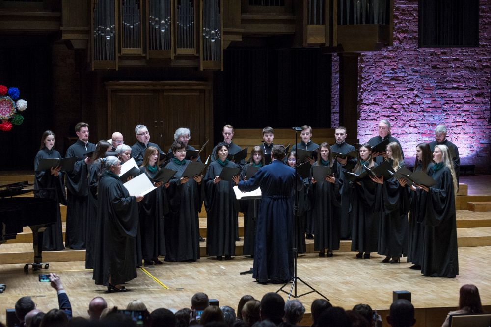 Lubelskie kolędowanie zakończyło się wspólnym wyjściem na scenę wszystkich chórzystów, którzy razem z publicznością odśpiewali kolędę „Dzisiaj w Betlejem” / „Niebo i Ziemla” fot. Krzysztof Kuzko