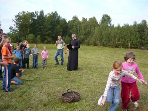 Na otarcie łez po wakacjach, które minęły, po pierwszych tygodniach spędzonych w szkolnych ławkach parafia prawosławna pw. św. Mikołaja w Zabłociu zorganizowała 13 września ognisko z atrakcjami dla dzieci, ich rodziców i dziadków. W roli głównej występował patyk, a towarzyszyły mu kiełbaska i chleb, płonącemu ognisku z pomocą przyszedł grill. Po posiłku, by nie stracić wakacyjnej kondycji, odbyły się zabawy i gry zręcznościowe. Dzieci i młodzież rywalizowała w takich konkurencjach jak rzut piłką do celu, rzut borowikiem do kosza (w którym były ukryte grzybki z pojęciami cerkiewnymi) oraz przeciąganie starej liny od dzwonów. W tej ostatniej konkurencji zmierzyła się jedna z liczniejszych rodzin w parafii – rodzina Woszkielów – z resztą parafian. Niestety okazało się, że aby zwyciężyć rodzina ta musi się jeszcze powiększyć; a stara lina z dzwonnicy okazała się na tyle wytrzymała, że posłużyła również jako skakanka. Po niezwykle emocjonującym przeciąganiu liny odbył się nie mniej emocjonujący mecz piłki nożnej – rodzice kontra dzieci. Po zaciętej walce w dogrywce zwyciężyli rodzice, którzy za kilka butelek coca coli dokonali do swojej drużyny transferu kilku par młodych nóg. W miłej atmosferze z uśmiechem na ustach, i z zakwasami pożegnaliśmy wakacje i już z wytęsknieniem czekamy następnych.
