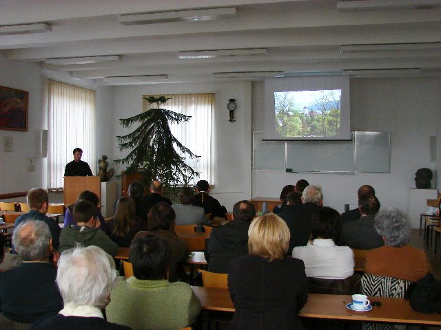 „Kościół Prawosławny w Rumunii” , tak brzmiał temat wykładu, który odbył się 19 października w biłgorajskiej filii UMCS-u. Odczyt i prezentacje multimedialne cieszyły się ogromnym zainteresowaniem parafian i  sympatyków prawosławia.  Prelegentem był lektor Tomasz Stempa – wykładowca Prawosławnego Seminarium Duchownego w Warszawie.  Pokazane nagrania fragmentów liturgii oraz zdjęcia przybliżyły słuchaczom wygląd rumuńskich cerkwi. Charakterystyczne dla najstarszych  z nich jest umieszczanie malowideł   ( najczęściej przedstawiających Sąd Ostateczny) na zewnętrznej części świątyń. Wnętrza każdej z nich są przyozdobione freskami przedstawiającymi nie tylko świętych, ale też ludzi, którzy zasłużyli się dla danej cerkwi. Rumunia to europejski kraj, gdzie  86% społeczeństwa  wyznaje religię prawosławną. Cerkiew w  tym państwie jest dobrze zorganizowana. Mogą o tym świadczyć liczne parafie funkcjonujące poza jej granicami, np. we Francji, Włoszech, Szwajcarii,  Australii, a także biskupstwo w USA.  Ciekawostką jest to, że szaty patriarchy rumuńskiego są białe. Dodatkowo  w rumuńskich świątyniach wewnątrz  nie stawia się świec. Robi się to w specjalnych domkach zbudowanych na zewnątrz, by nie niszczyć przepięknych fresków. Diecezja Lubelsko-Chełmska współpracuje z tamtejszą Cerkwią. Świadczą o tym częste spotkania biskupów, duchownych a także koncerty czy też wspólne obozy dla młodzieży. Na zakończenie organizator spotkań – ks. Jarosław Biryłko podziękował prelegentowi za prezentację i wykład oraz zaprosił wszystkich na kolejne spotkanie, które odbędzie się w listopadzie. Jego tematem będzie Kościół Prawosławny w Gruzji. Będzie ono połączone z otwarciem wystawy fotograficznej o św. Grzegorzu Peradze i Cerkwi w Gruzji.