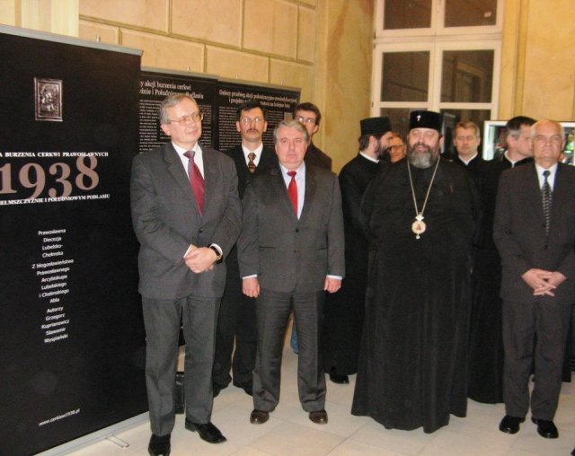 Ostatnim akcentem tegorocznych obchodów 70. rocznicy akcji burzenia cerkwi na Chełmszczyźnie i Południowym Podlasiu była dyskusja panelowa i otwarcie w Lublinie wystawy poświęconej tym tragicznym wydarzeniom. 17 grudnia uczestników dyskusji oraz wystawę gościły mury Wydziału Politologii Uniwersytetu Marii Curie-Skłodowskiej w Lublinie. Zebranych powitał gospodarz – dziekan Wydziału Politologii UMCS prof. Grzegorz Janusz. Uroczystego otwarcia wystawy „1938. Akcja burzenia cerkwi na Chełmszczyźnie i Południowym Podlasiu”, autorstwa dr Grzegorza Kuprianowicza i Sławomira Wyspiańskiego, dokonali: prawosławny arcybiskup lubelski i chełmski Abel oraz prorektor UMCS prof. Ryszard Szczygieł. Otwarcie wystawy uświetnił koncert kwartetu męskiego zespołu wokalnego pod kierownictwem Andrzeja Boubleja, działającego przy lubelskiej katedrze prawosławnej. Arcybiskup Abel w krótkim słowie wstępnym stwierdził, że ten piękny śpiew cerkiewny w 1938 r. przestał rozbrzmiewać w 127 świątyniach zniszczonych z polecenia władz II RP. Następnie w auli im. I. Daszyńskiego Wydziału Politologii UMCS odbyła się dyskusja panelowa pt. „70. rocznica akcji burzenia cerkwi na Chełmszczyźnie i Południowym Podlasiu w 1938 r. – spojrzenie na przeszłość i współczesność”, w której wzięli udział znawcy tematu, historycy: prof. Jerzy Tomaszewski z Uniwersytetu Warszawskiego, prof. Tadeusz Radzik – kierownik Zakładu Historii Najnowszej UMCS, dr Grzegorz Kuprianowicz – pracownik UMCS i autor książki poświęconej tym wydarzeniom, a także znawca praw mniejszości narodowych – prof. Grzegorz Janusz oraz Paweł Smoleński – publicysta „Gazety Wyborczej”. W roli moderatora wystąpił prof. Zbigniew Hołda – znany polski karnista i członek zarządu Helsińskiej Fundacji Praw Człowieka. Wszyscy uczestnicy panelu zgodni byli co do tego, że akcja burzenia cerkwi na Chełmszczyźnie i Południowym Podlasiu była haniebnym działaniem władz państwa polskiego zmierzającym do narodowej i wyznaniowej asymilacji ukraińskiej ludności prawosławnej. Jerzy Tomaszewski zaznaczył, że świadomość tych tragicznych wydarzeń w społeczeństwie polskim jest znikoma, co nie pozwala zrozumieć wspólnej polsko-ukraińskiej historii w czasie drugiej wojny światowej oraz w okresie powojennym. Grzegorz Kuprianowicz stwierdził, że słaba wiedza w społeczeństwie polskim o burzeniu cerkwi uniemożliwia zrozumienie przez polską większość ukraińskiej społeczności prawosławnej. Paweł Smoleński krytycznie odniósł się do negatywnych lub niejednoznacznych postaw zdecydowanej większości polskich posłów wobec pomysłu przyjęcia przez Sejm uchwały potępiającej niszczenie cerkwi prawosławnych w państwie polskim. Dyskusja zakończyła się pytaniami ze strony licznie zebranych w auli słuchaczy. Wystawę oraz dyskusję poświęconą 70. rocznicy akcji burzenia cerkwi na Chełmszczyźnie i Południowym Podlasiu w Lublinie objęła patronatem medialnym „Gazeta Wyborcza”, którą reprezentowała w tym dniu redaktor naczelna lubelskiej „GW” Małgorzata Bielecka-Hołda. Organizatorami dyskusji i wystawy w Lublinie były: Prawosławna Diecezja Lubelsko-Chełmska, Wydział Politologii Uniwersytetu Marii Curie-Skłodowskiej w Lublinie oraz Towarzystwo Ukraińskie w Lublinie. Wystawa eksponowana będzie na Wydziale Politologii UMCS do 25 stycznia 2009 r.