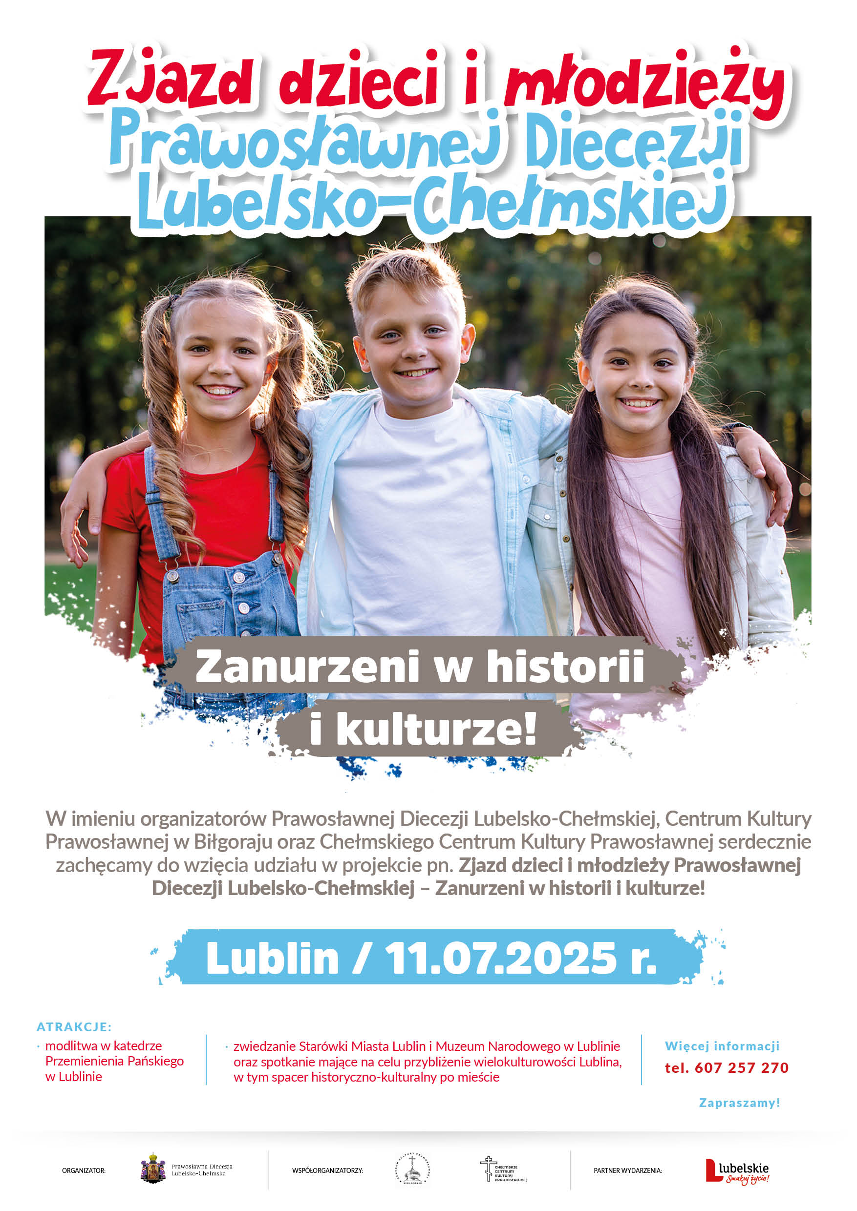 11 lipca 2025 roku w Lublinie odbędzie się wydarzenie pn. Zjazd dzieci i młodzieży Prawosławnej Diecezji Lubelsko-Chełmskiej – Zanurzeni w historii i kulturze!, które stanowi wyjątkową możliwość integracji młodych ludzi wyznania prawosławnego z terenu województwa lubelskiego.