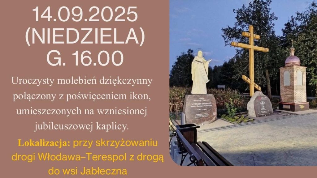 W niedzielę, 14 września br., o godz. 16.00 w Jabłecznej, przy skrzyżowaniu drogi Włodawa–Terespol z drogą do wsi Jabłeczna, odbędzie się uroczysty molebień dziękczynny połączony z poświęceniem ikon-mozaik, umieszczonych na wzniesionej jubileuszowej kaplicy, upamiętniających wspomniane wydarzenia.