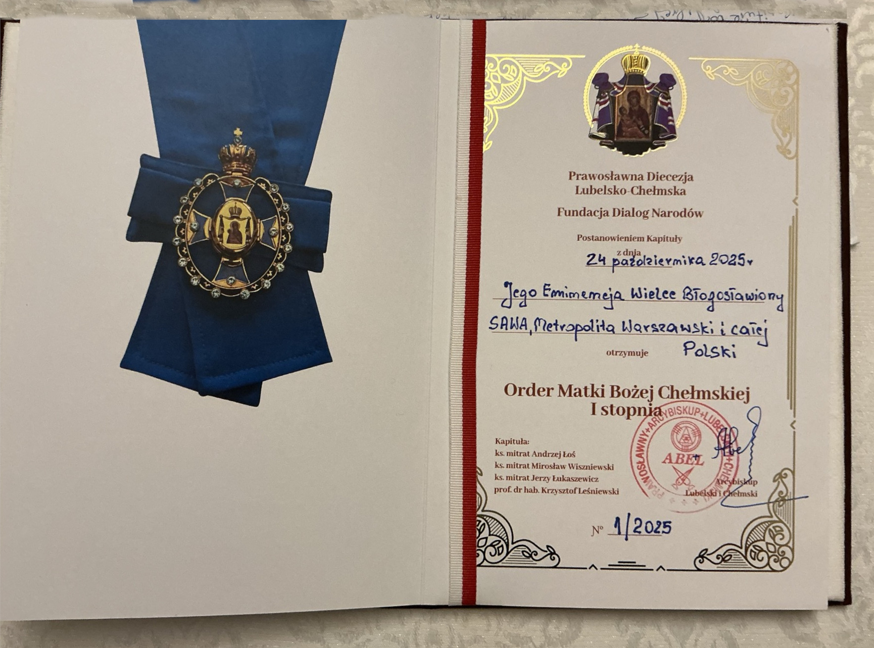 Decyzją Kapituły z dnia 24 października 2025 r. (protokół nr 1/2025), Orderem Matki Bożej Chełmskiej I stopnia nr 1 uhonorowano Jego Eminencję, Wielce Błogosławionego Sawę, Metropolitę Warszawskiego i całej Polski.