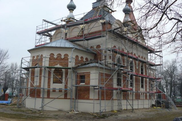 – zakończono prace przy konserwacji wątku ceglanego oraz detali tynkarskich, wymieniono tynki cokołu, wykonano remont schodów bez okładziny kamiennej, wymieniono posadzki wewnątrz cerkwi przygotowano pod okładzinę z płytek;