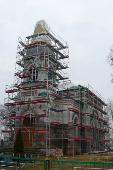– zakończono prace remontowe konstrukcji drewnianej dachu kopuł cerkwi przygotowując pod krycie blachą miedzianą i poddano renowacji jej krzyże;