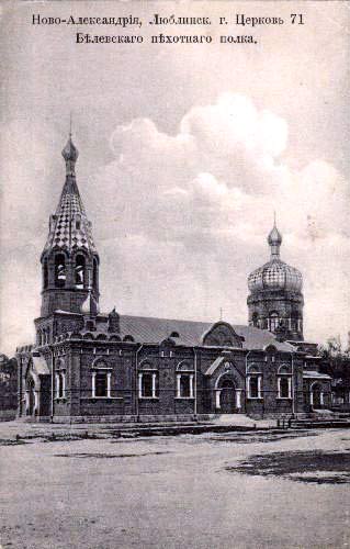 Dla stacjonującego w mieście 71. Bielejewskiego Pułku Piechoty wybudowano standardową wojskową cerkiew. Budynek stał pośród zabudowań koszarowych. Cerkiew wyświęcono 10 lipca 1909 roku. W 1920 roku cerkiew przeznaczono na kościół garnizonowy. Całkowita przebudowa nastąpiła w latach 1936-1937. Wtedy usunięto wszystkie elementy charakterystyczne dla cerkwi. Obecnie jest to kościół katolicki parafii Matki Boskiej Różańcowej.